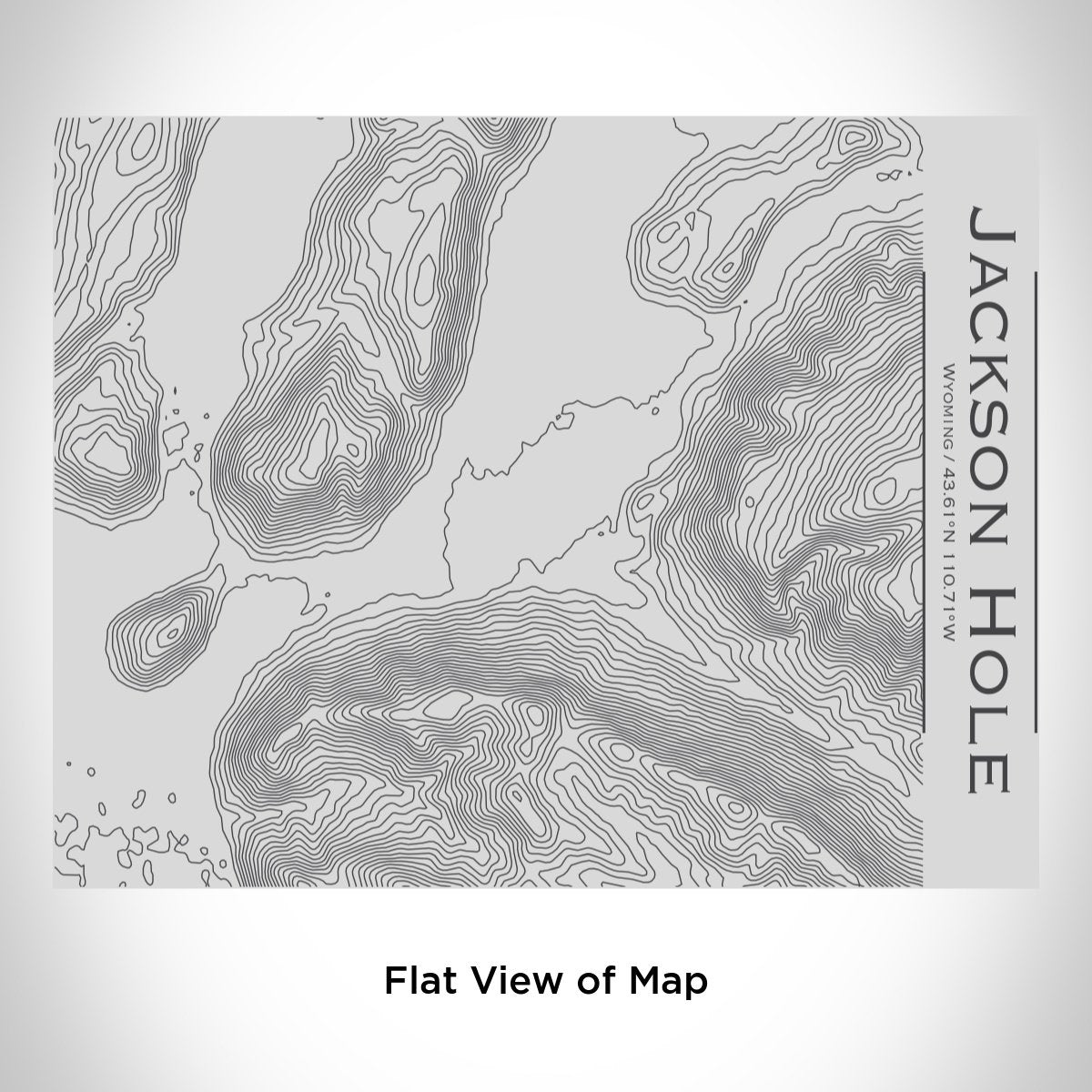 Custom engraved topographic map of Jackson Hole, Wyoming and coordinates on 20oz double walled insulated stainless steel bottle with bamboo top. Measurement - 4in x 4in x 12in.